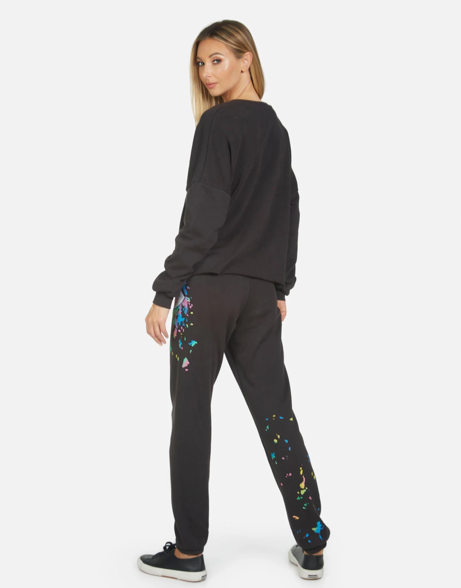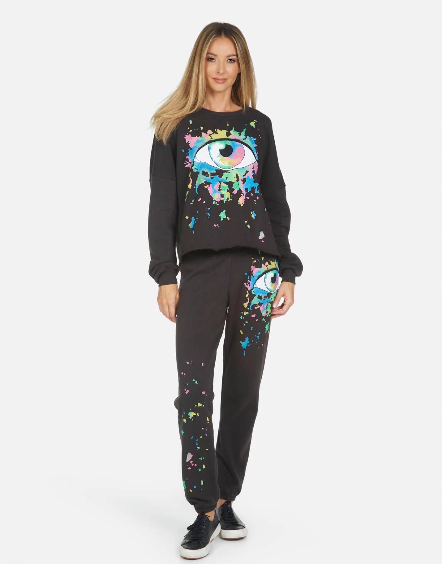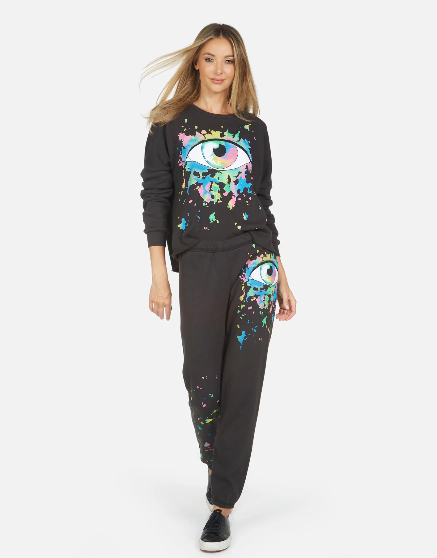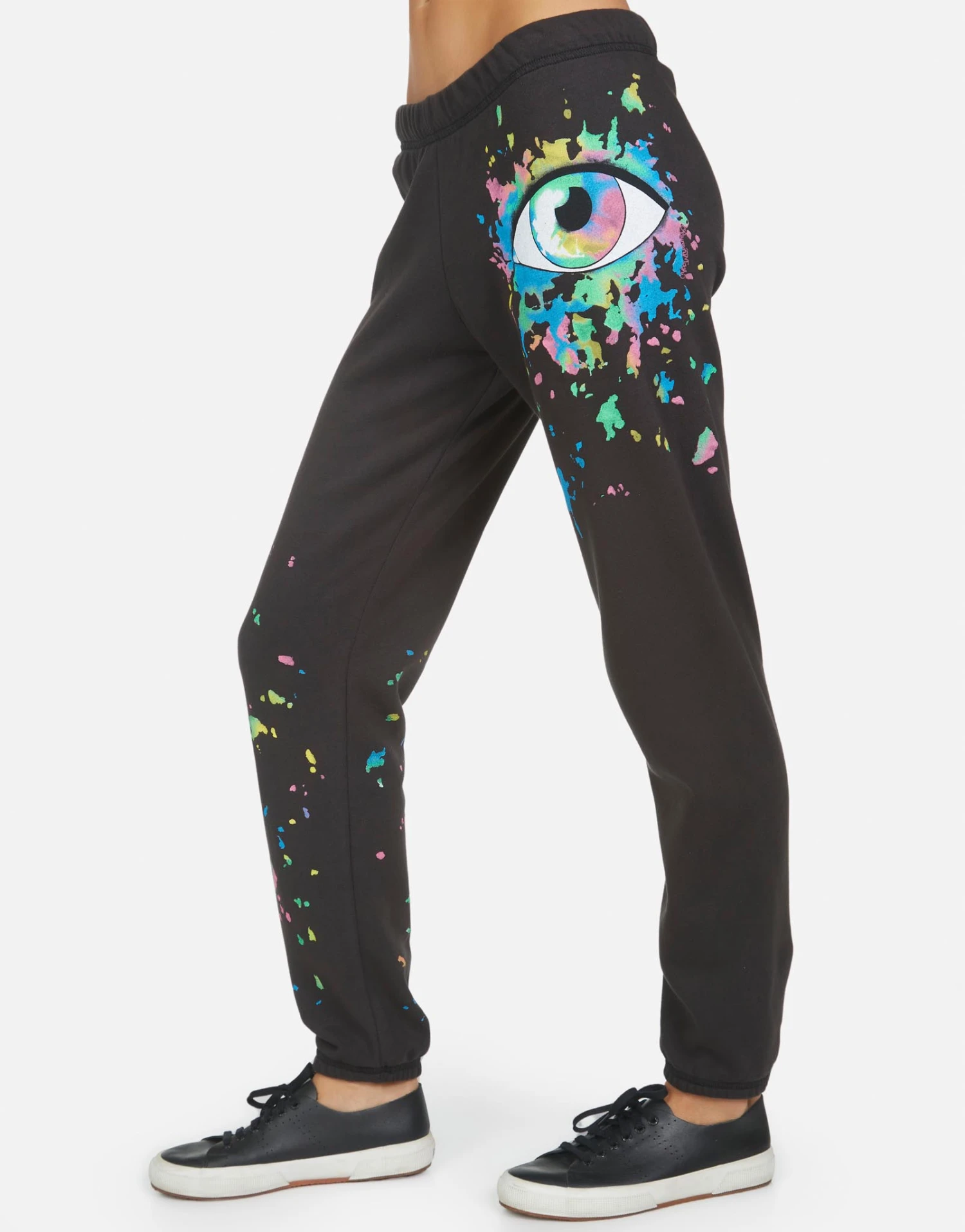 Watercolor Eye Printed on Ultra Soft Lightweight Sweatpant in Onyx by Lauren Moshi.
