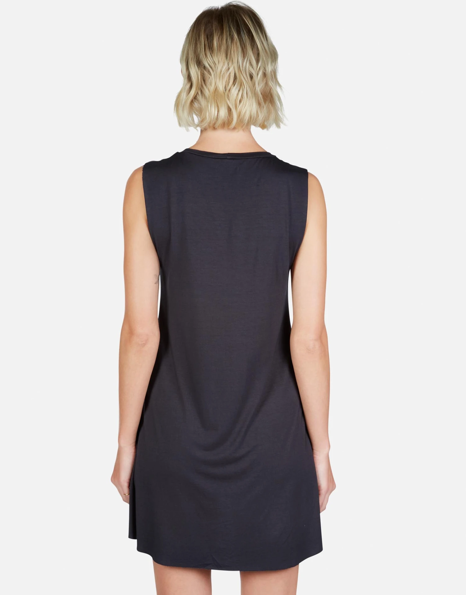 Color Elements Lip Printed on Ultra Soft Lightweight Mini Dress in Onyx by Lauren Moshi.
