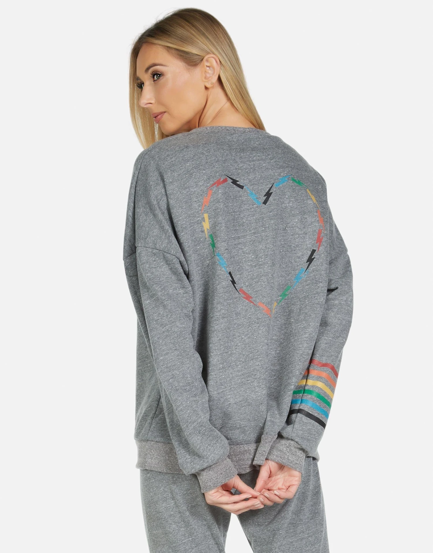 Electric Skull on Ultra Soft Lightweight Pullover in Heather Grey by Lauren Moshi.