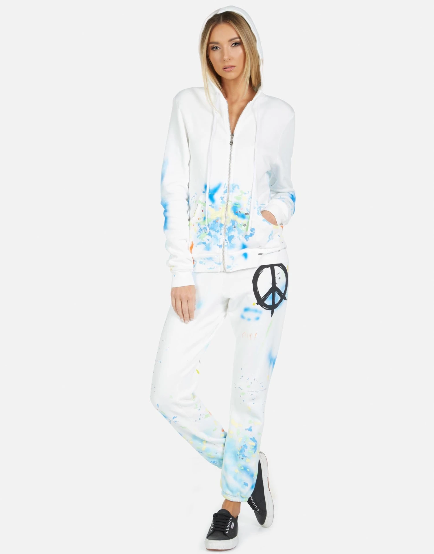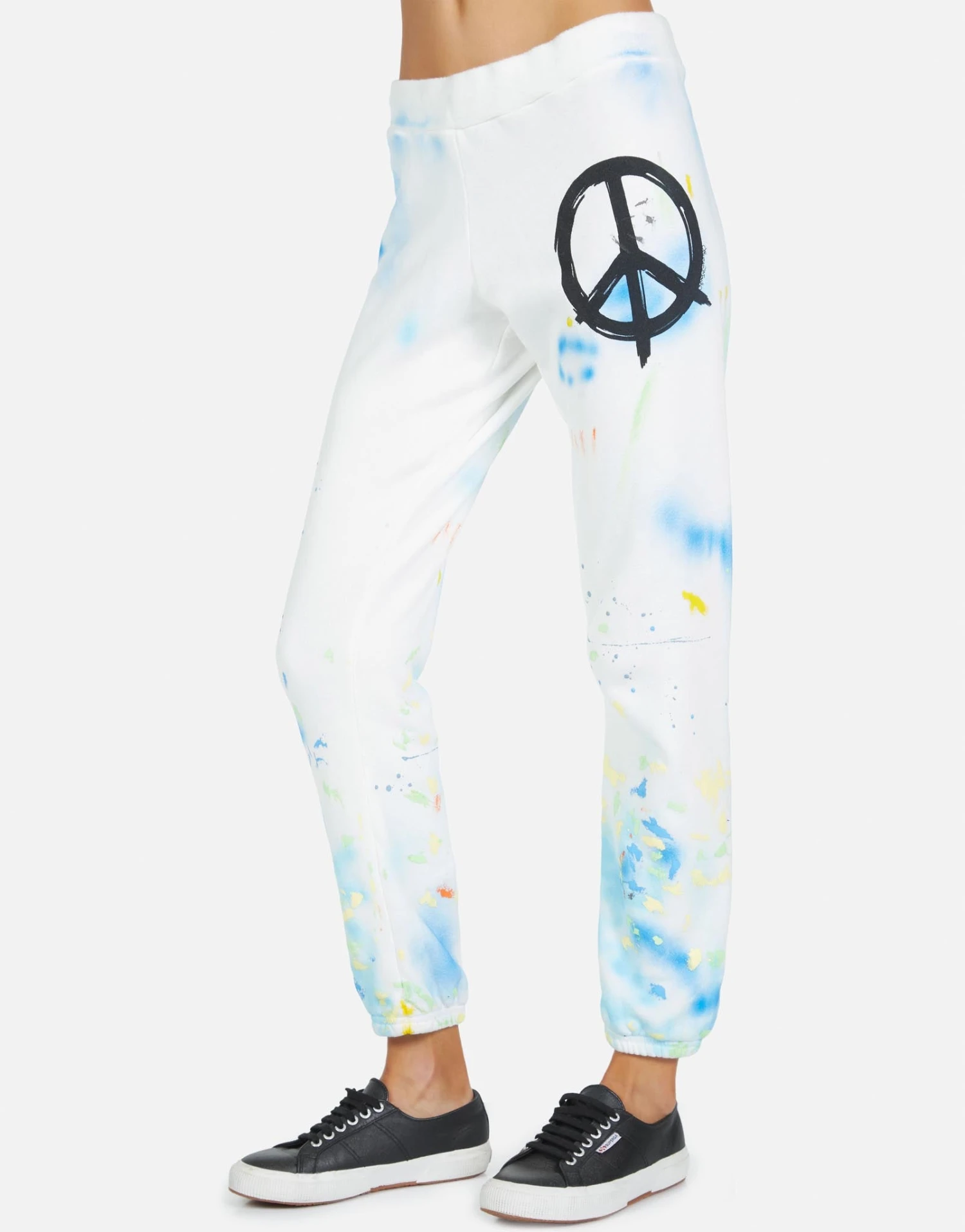 Brush Peace on Ultra Soft Lightweight Sweatpant in White/Paint Splatter by Lauren Moshi.