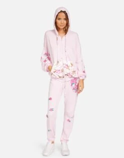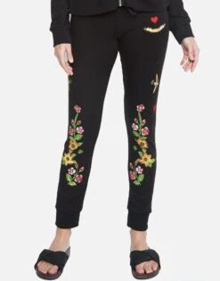 Floral Love Printed on Ultra Soft Lightweight Sweatpant in Black by Lauren Moshi.