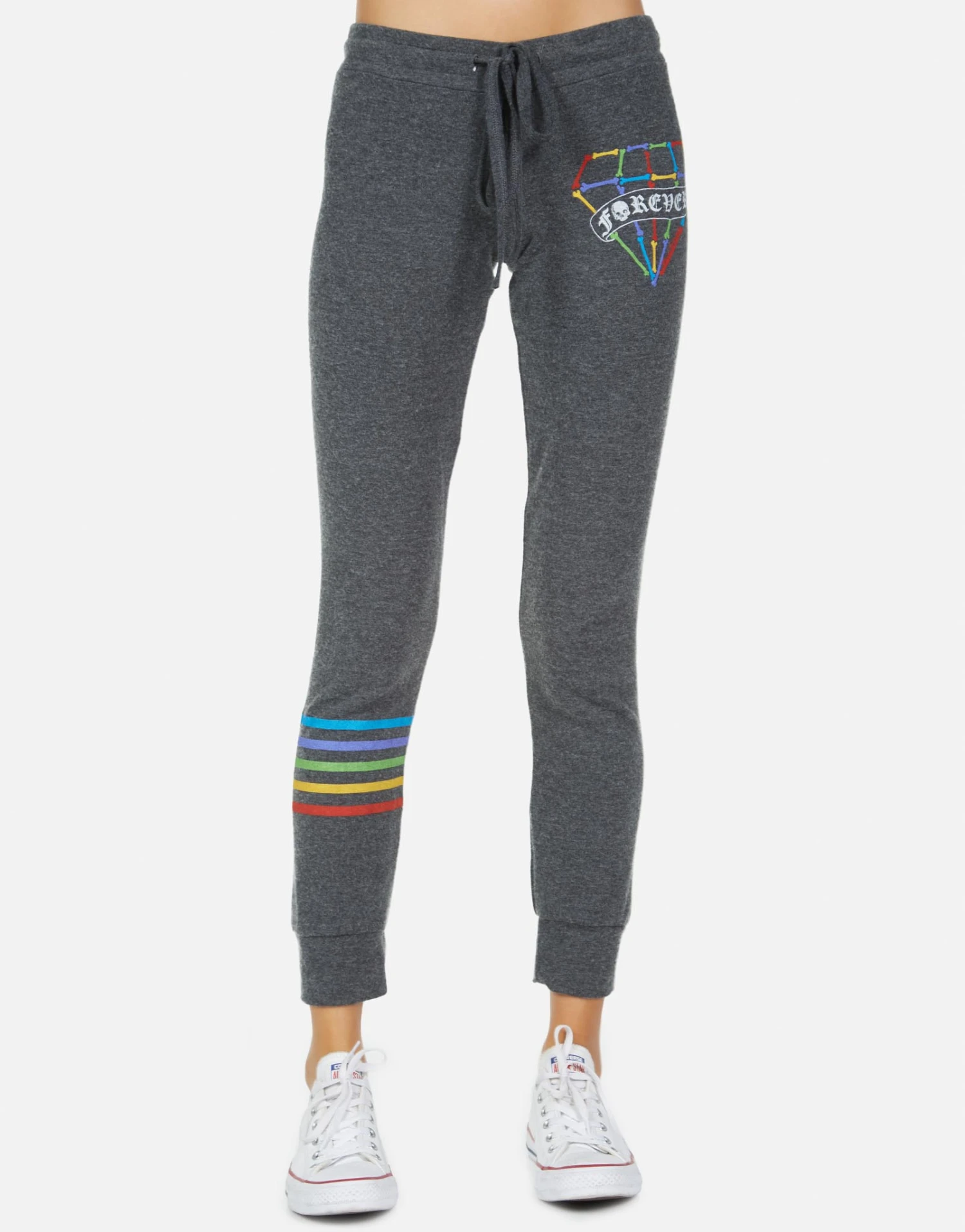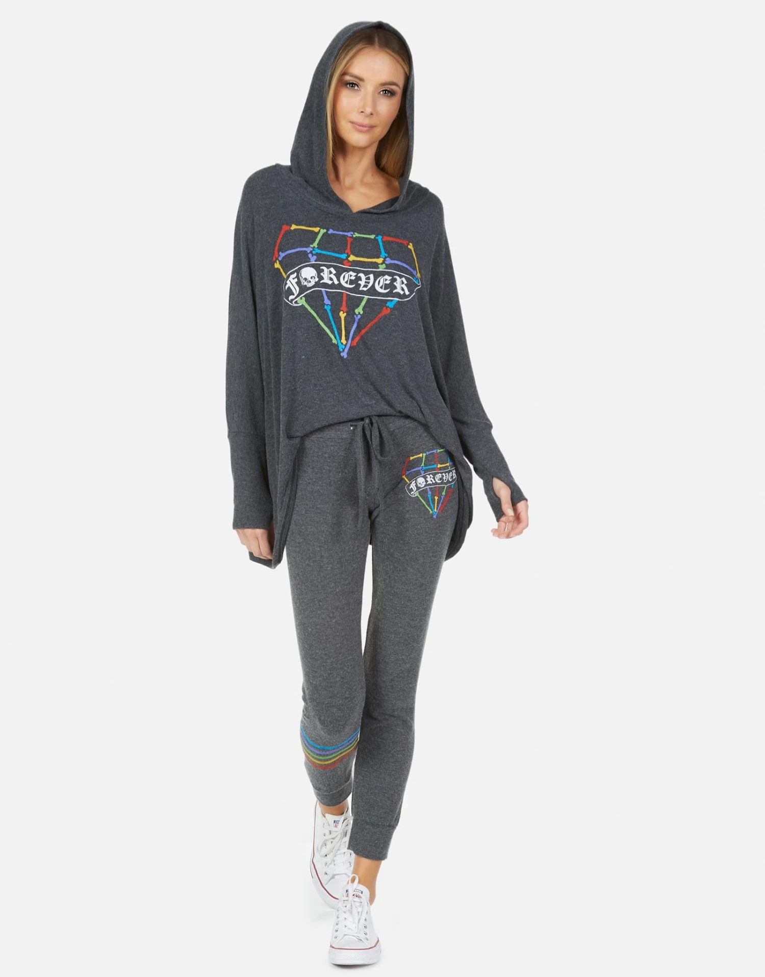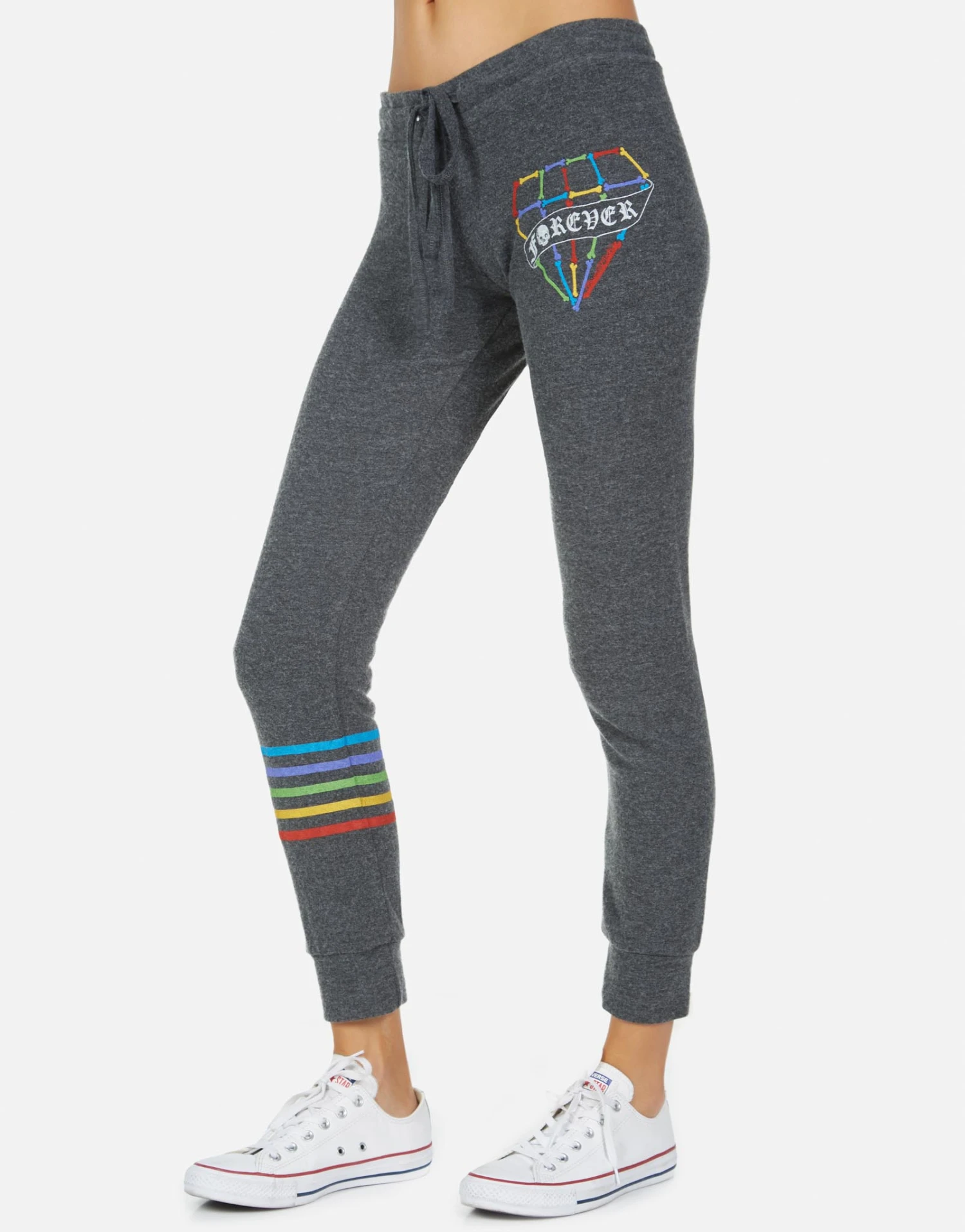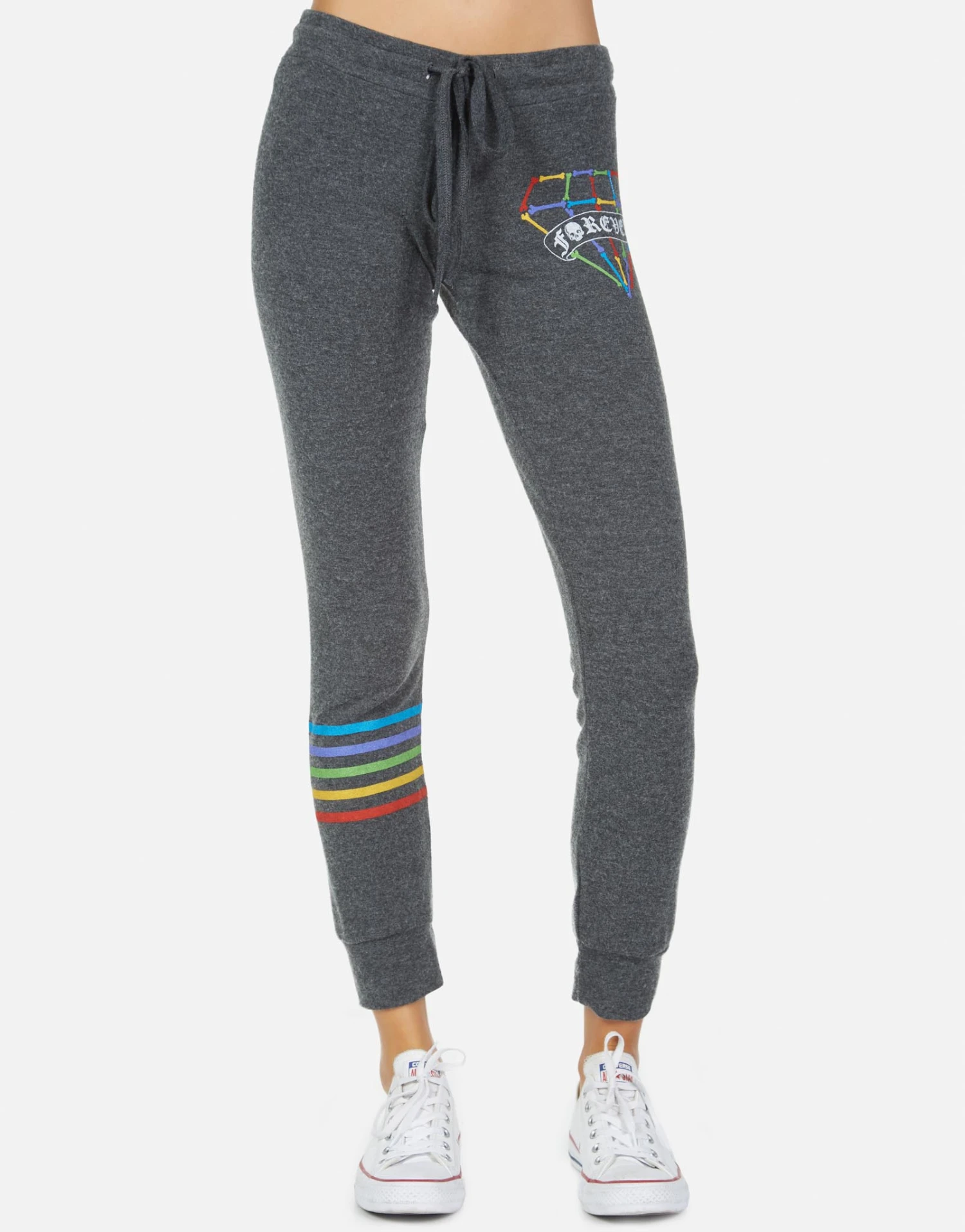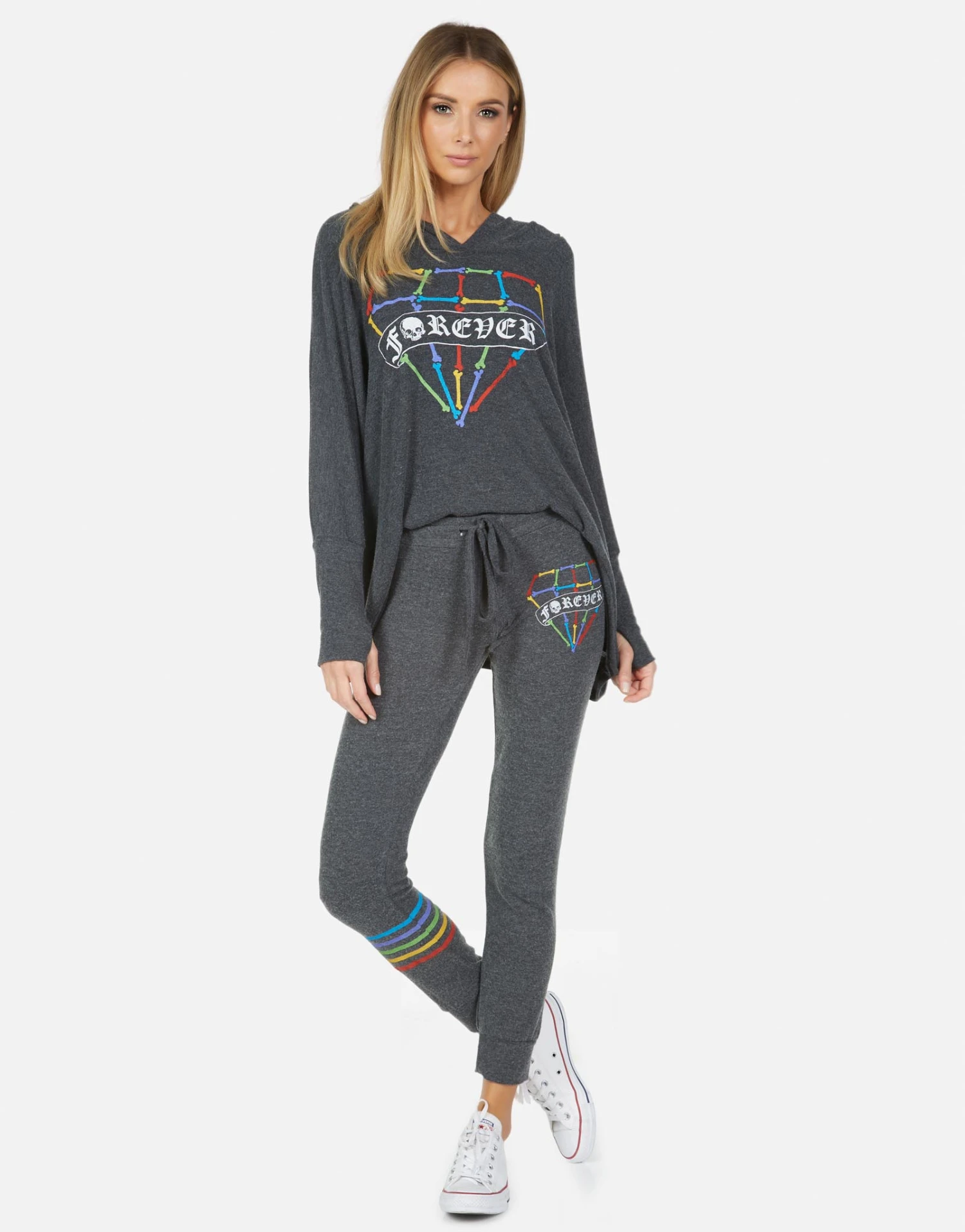 Bone Diamond Printed on Ultra Soft Lightweight Sweatpant in Heather Black by Lauren Moshi.
