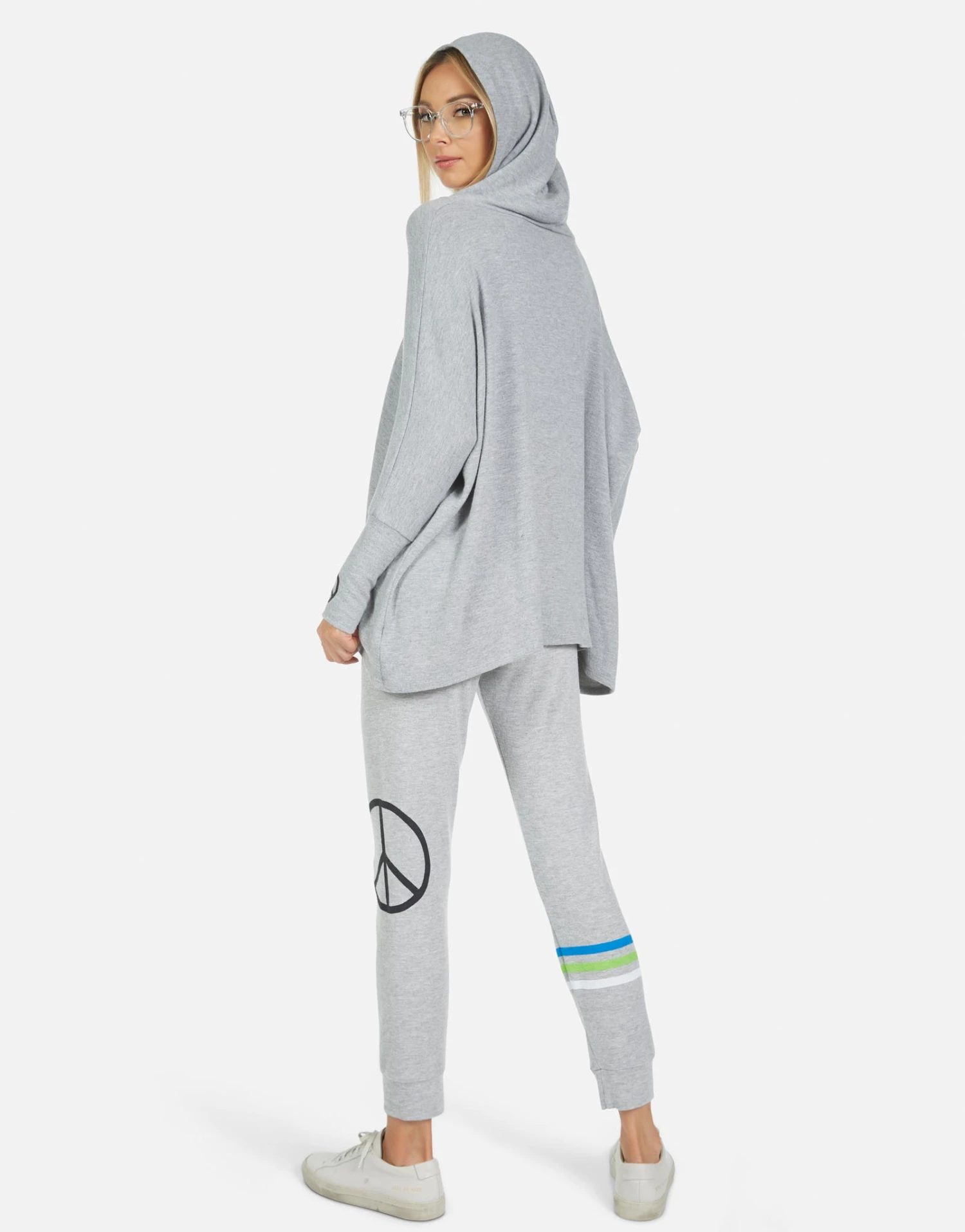 World Peace Lips Printed on Ultra Soft Lightweight Sweatpant in Heather Grey by Lauren Moshi.