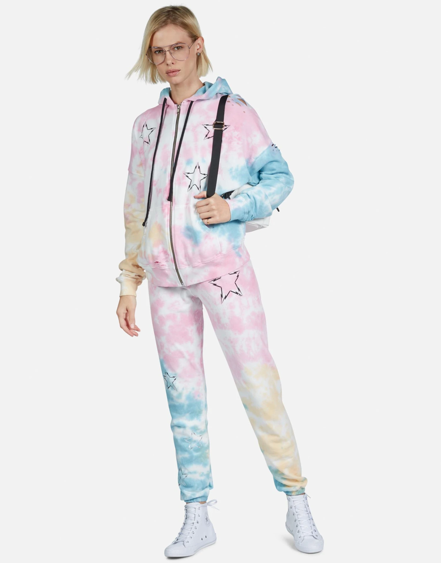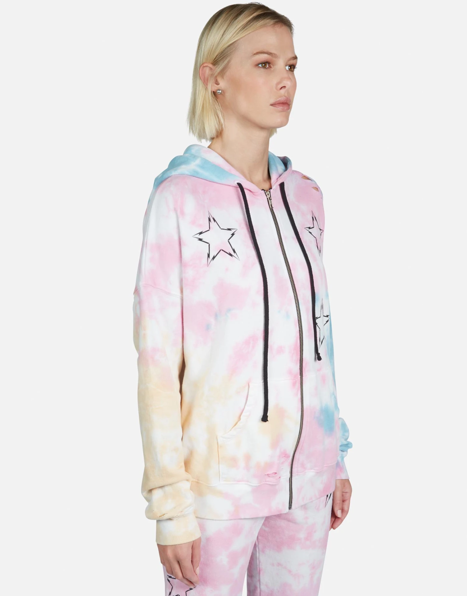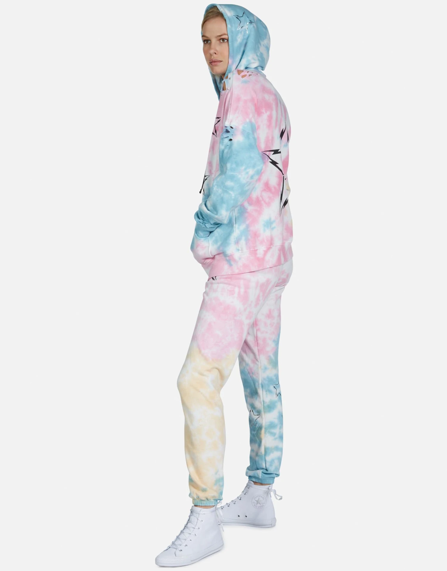 Lightning Bolt Star Printed on Ultra Soft Pullover Hoodie in Kaleidoscope by Lauren Moshi.