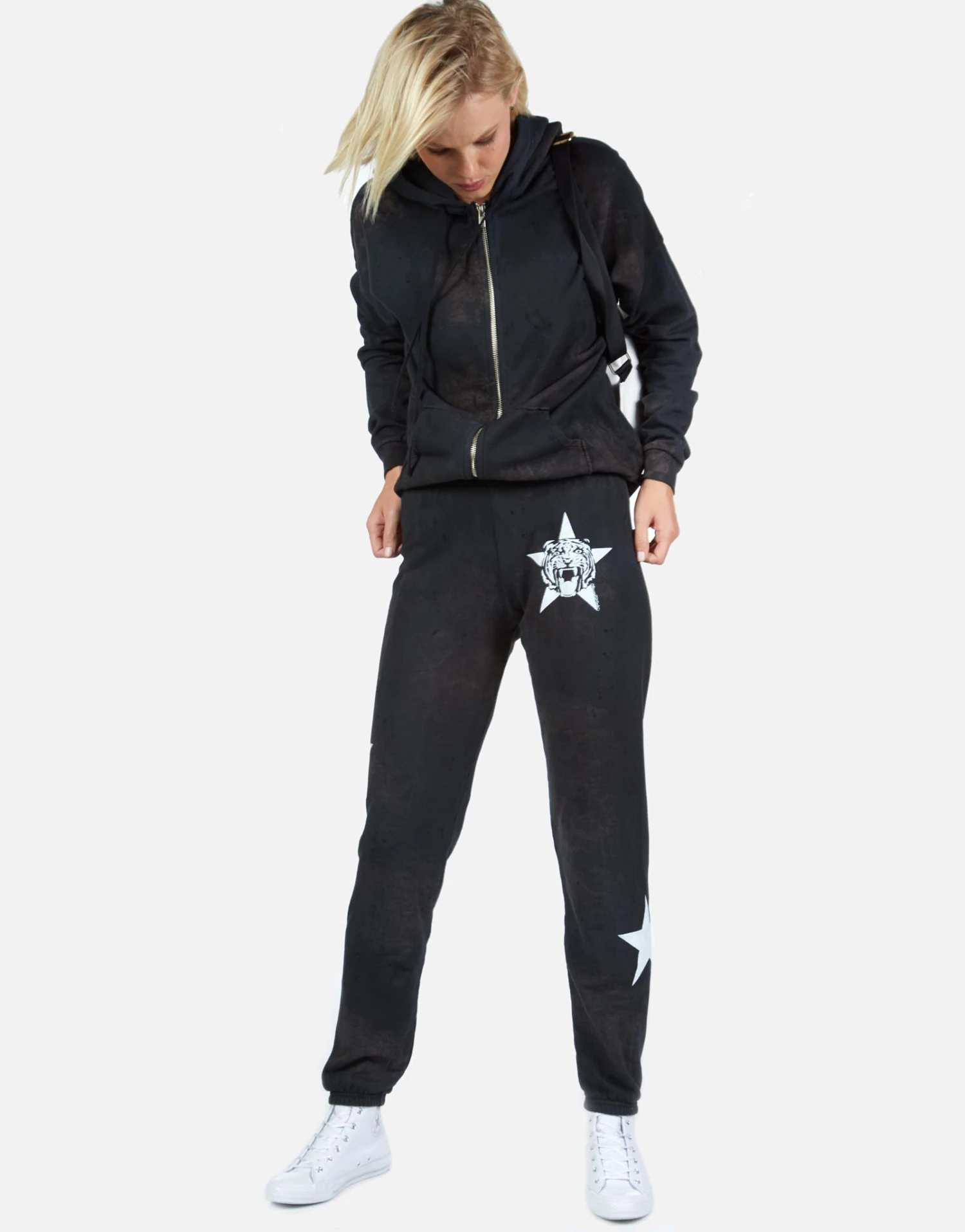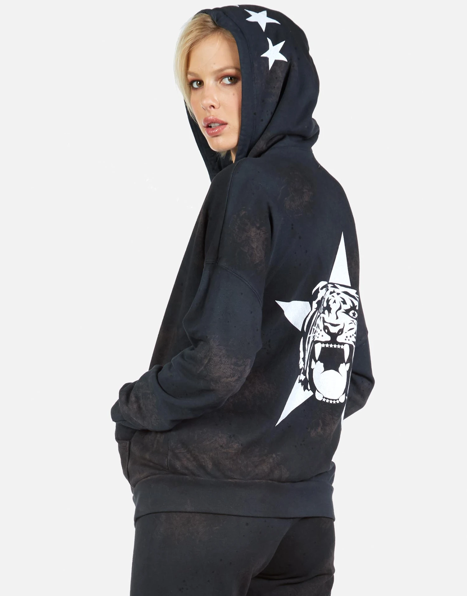 Star Tiger Printed on Ultra Soft Lightweight Hoodie in Onyx Wash by Lauren Moshi.