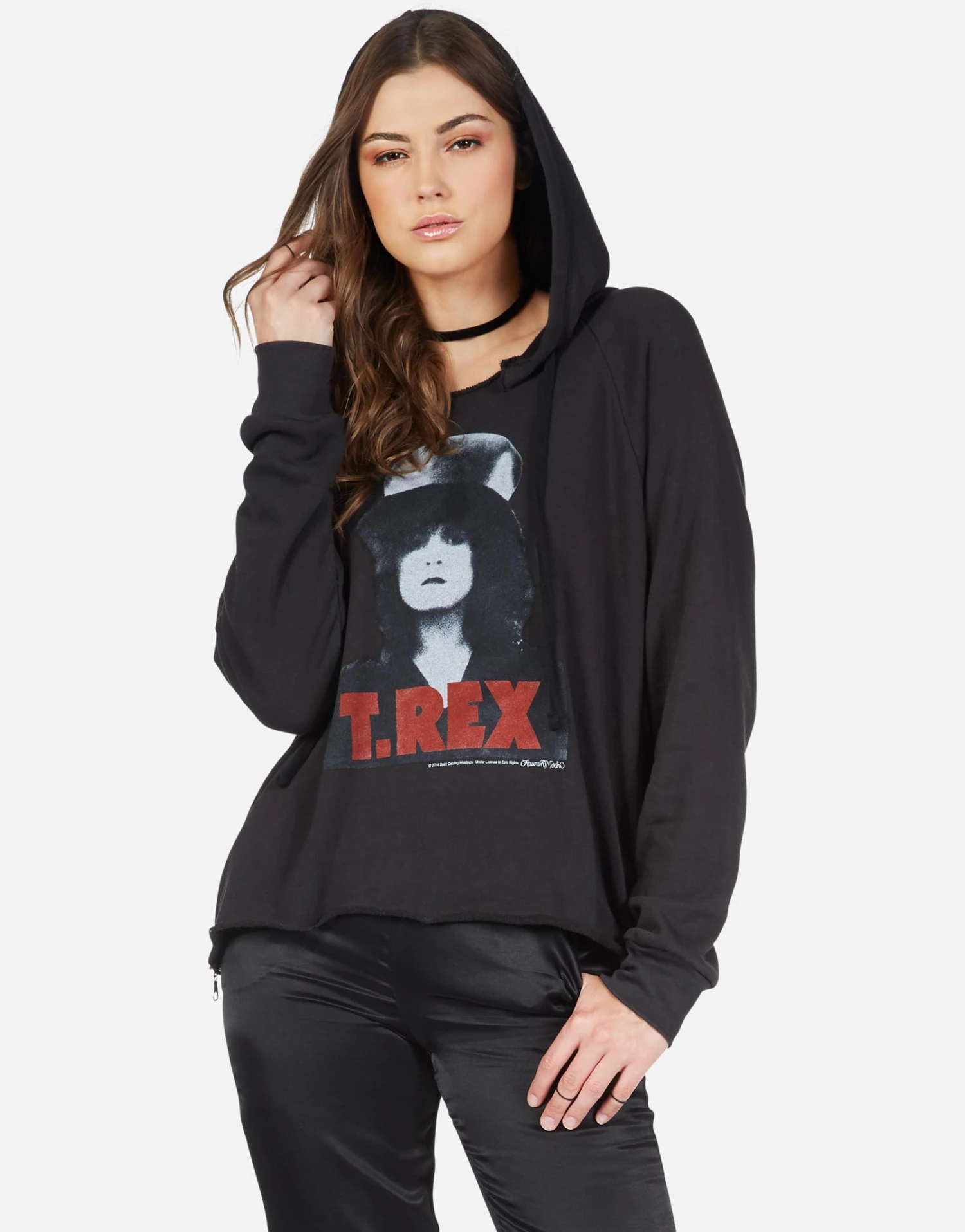 T-Rex the Slider Printed on Ultra Soft Pullover Hoodie in Onyx by Lauren Moshi.