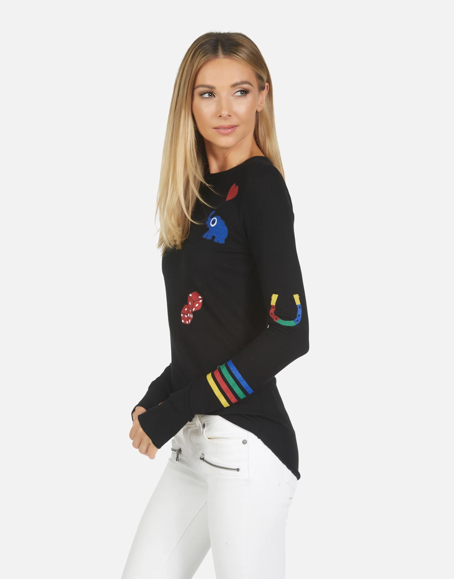 Lucky Elements Printed on Ultra Soft Lightweight Thermal in Milk & Black by Lauren Moshi.