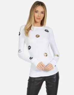 Foil Mini Kisses on Ultra Soft Lightweight Thermal in White by Lauren Moshi.
