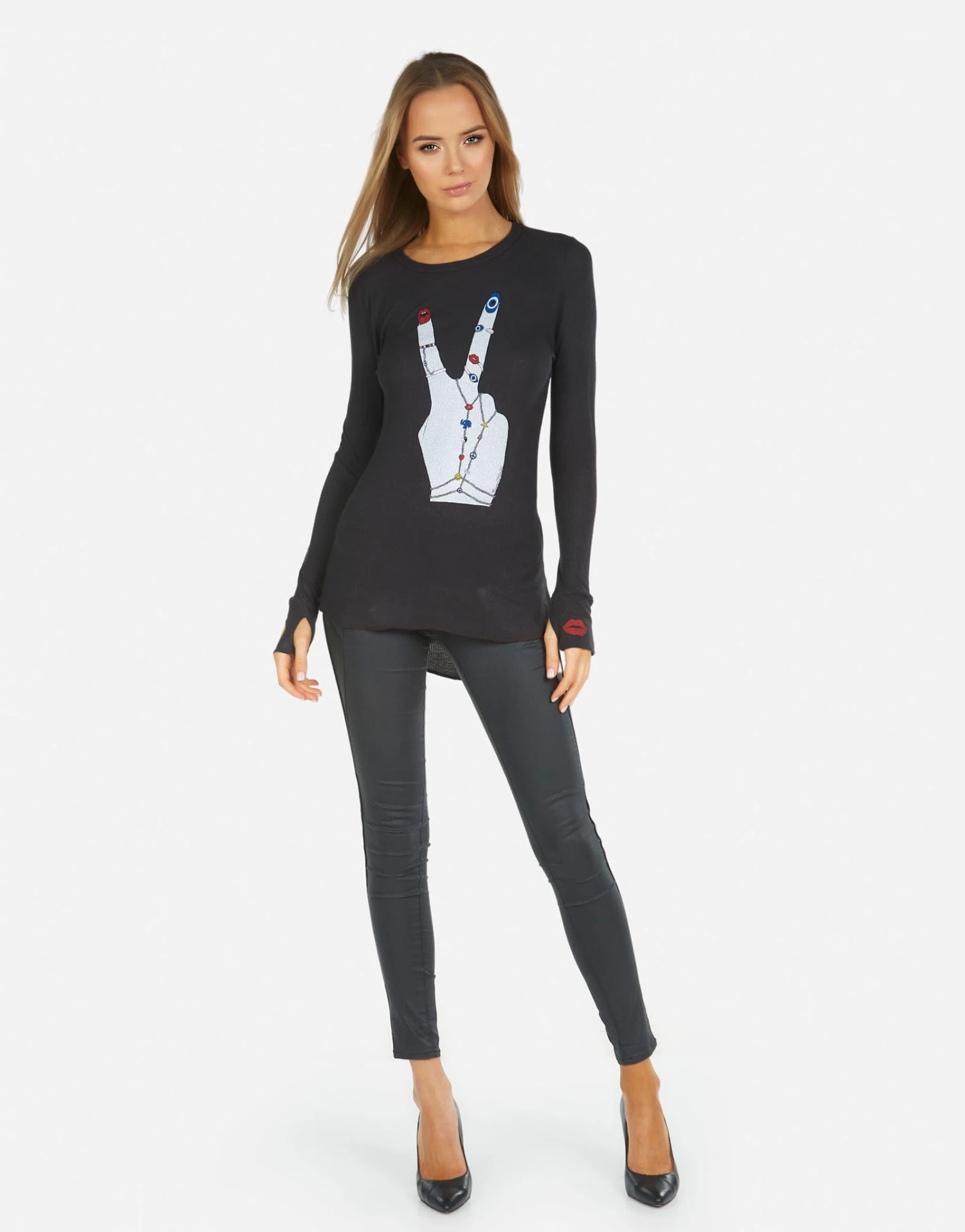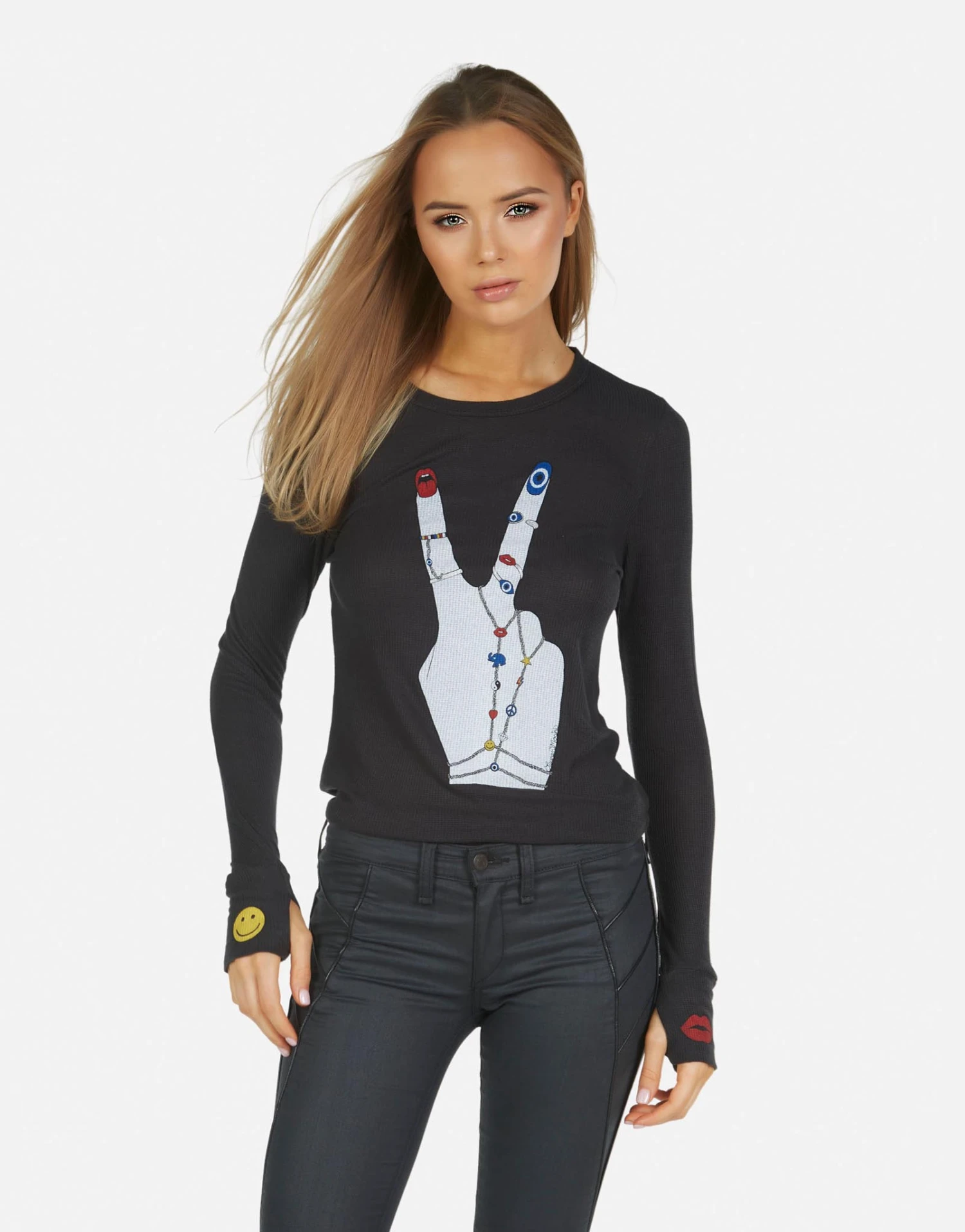 Peace Hand Elements Printed on Ultra Soft Lightweight Thermal in Onyx by Lauren Moshi.