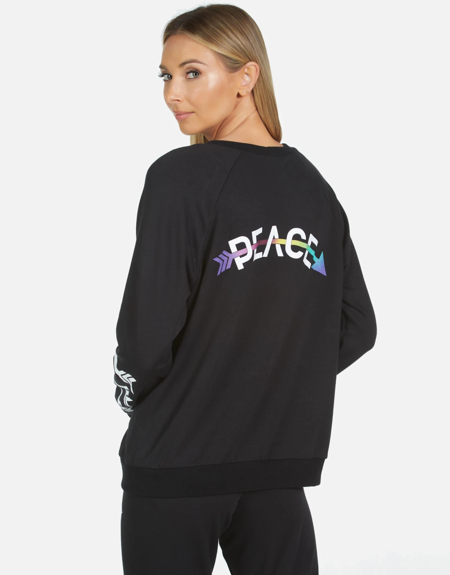 Peace Arrow Printed on Ultra Soft Lightweight Pullover in Black by Lauren Moshi.