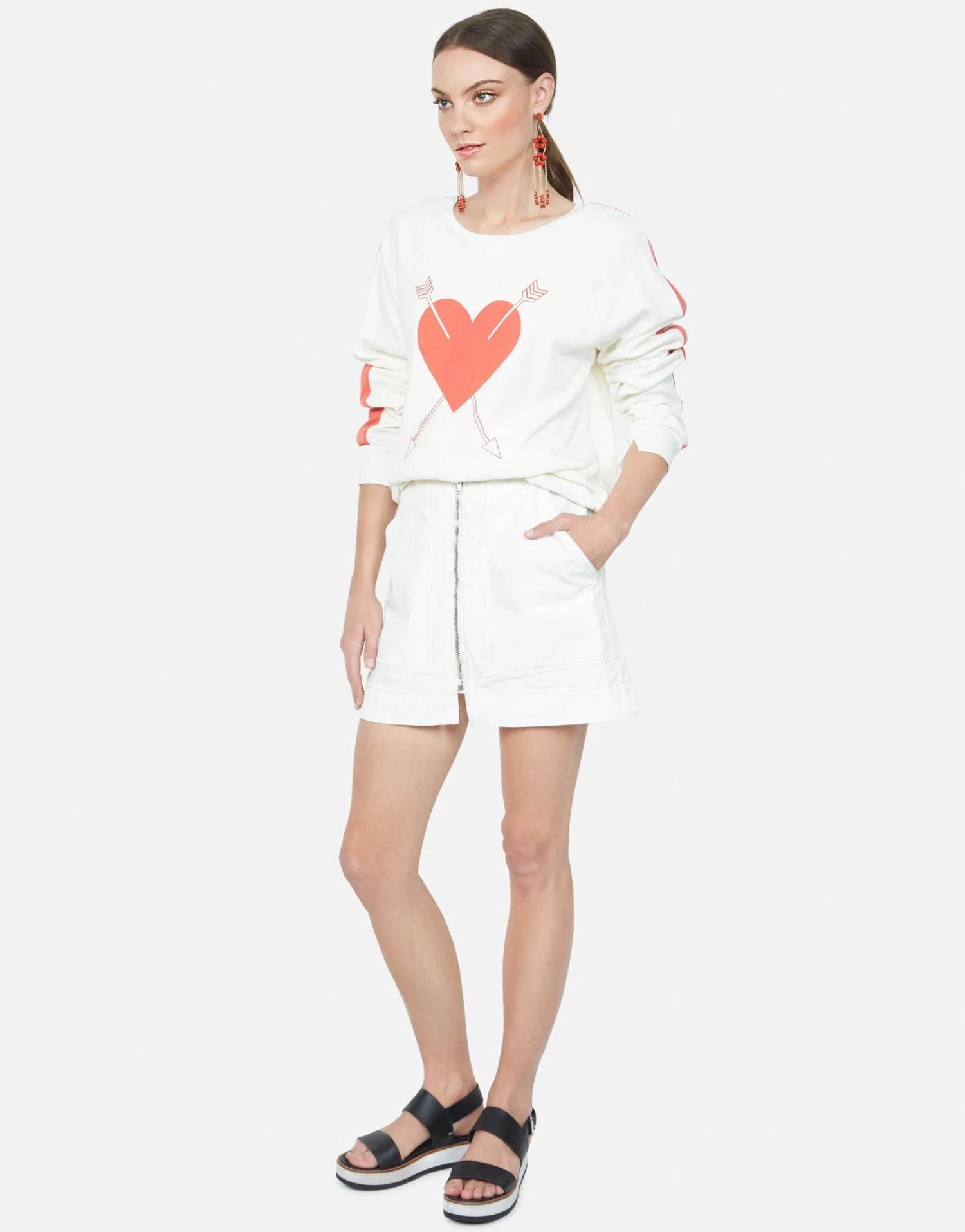 Red Arrow Heart Printed on Super Soft Long Sleeve Pullover in Faded White/Tomato by Lauren Moshi.