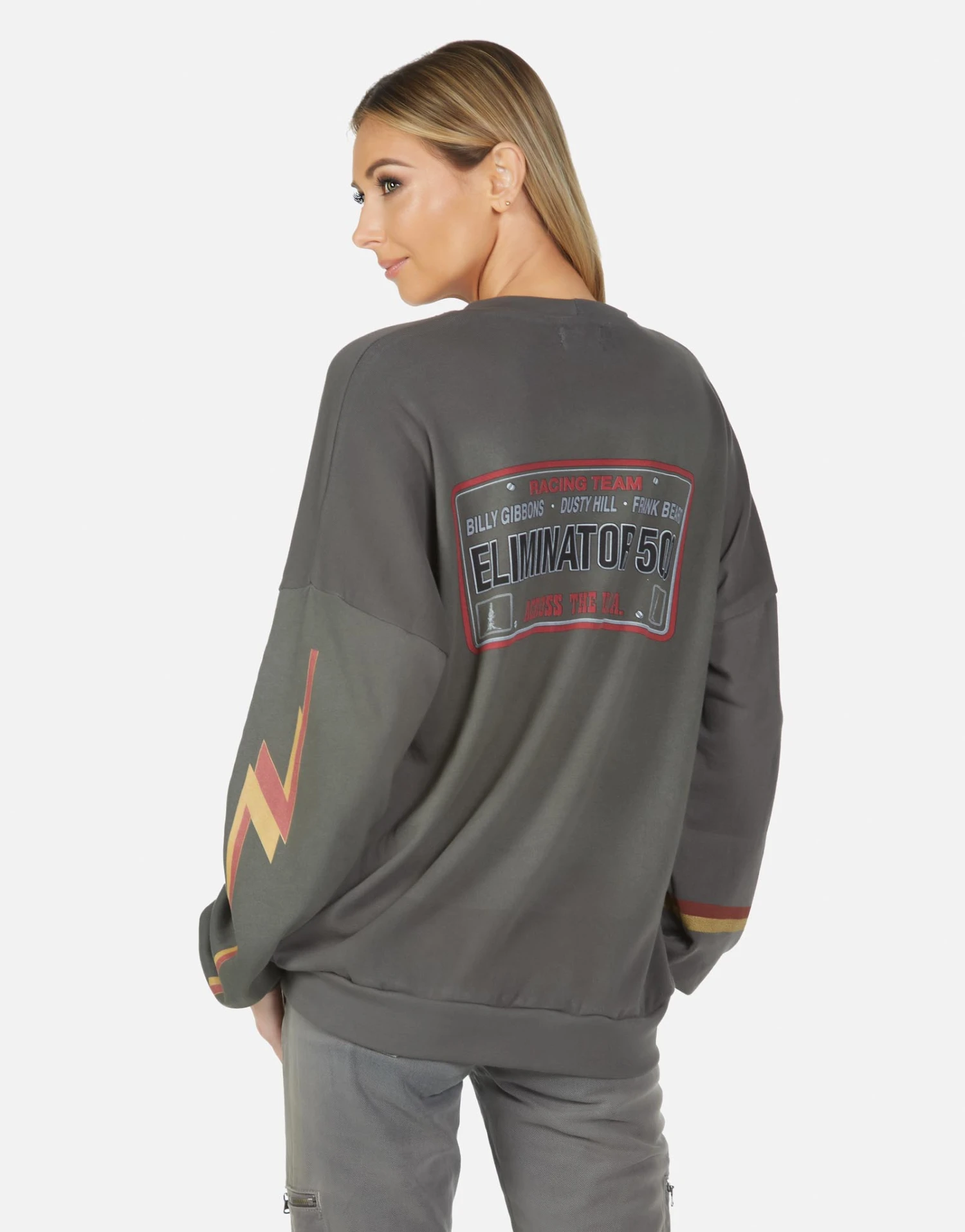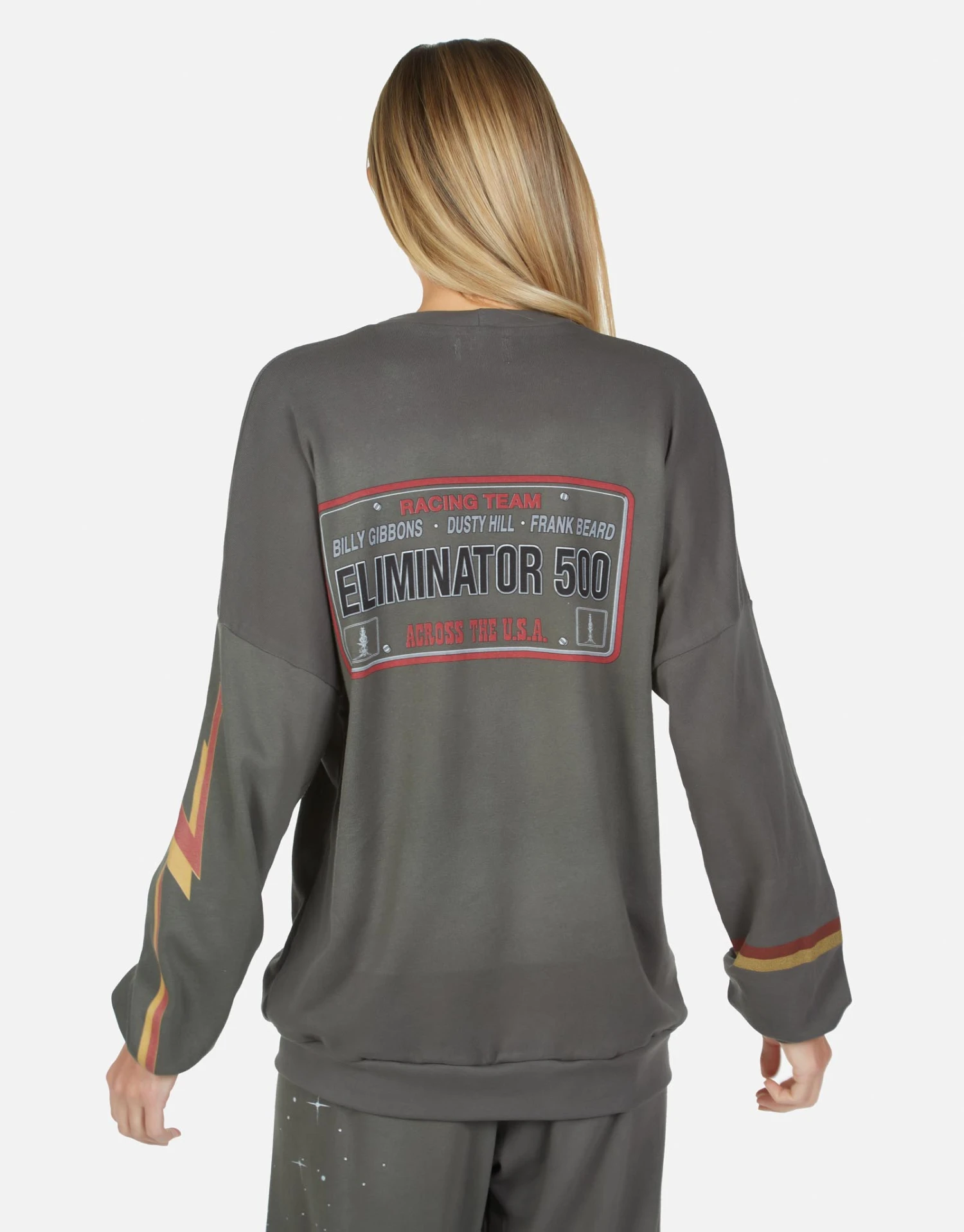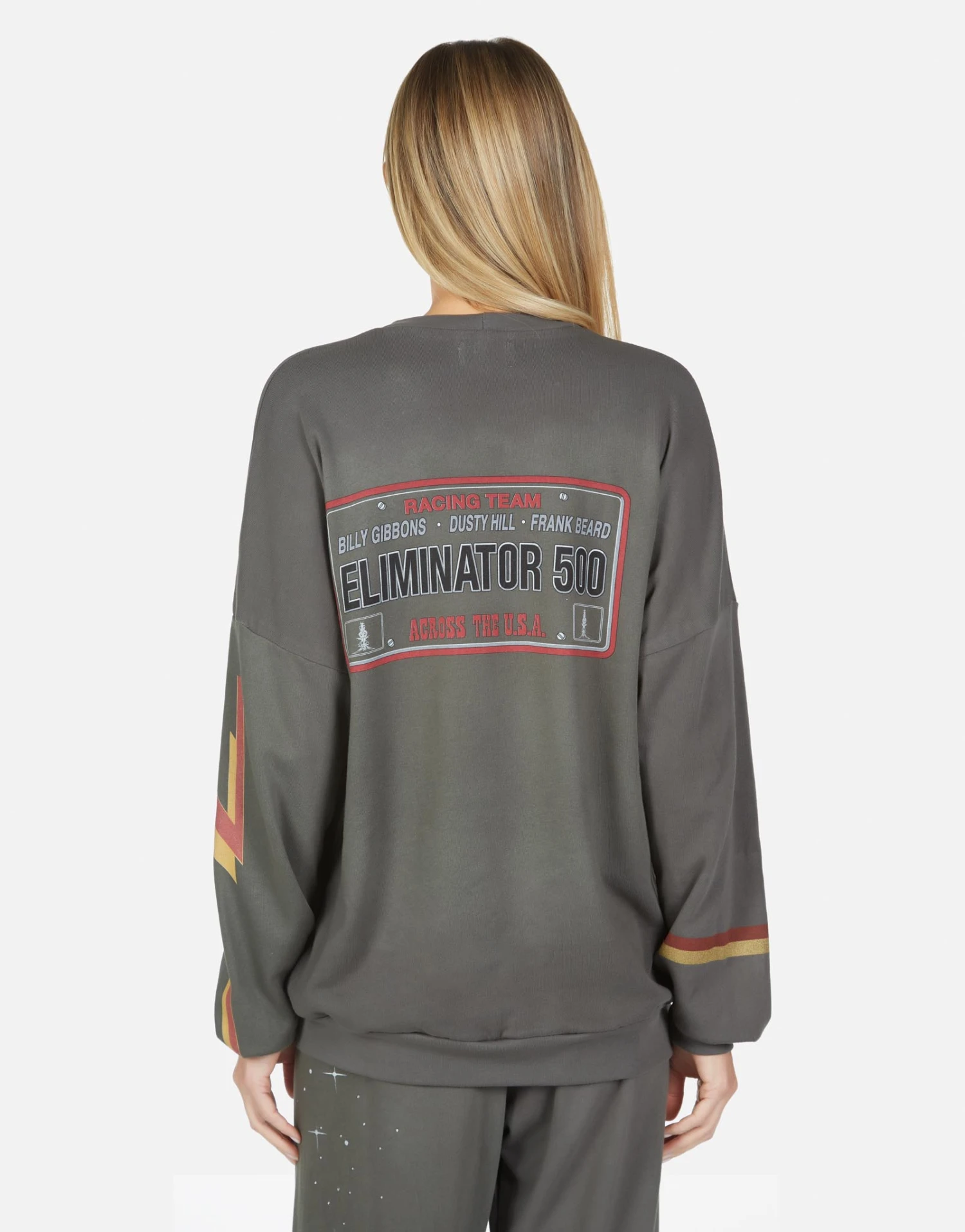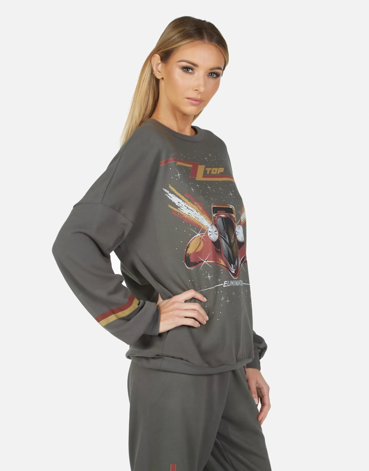 ZZ Top Eliminator Printed on Ultra Soft Lightweight Pullover in Vintage Onyx by Lauren Moshi.