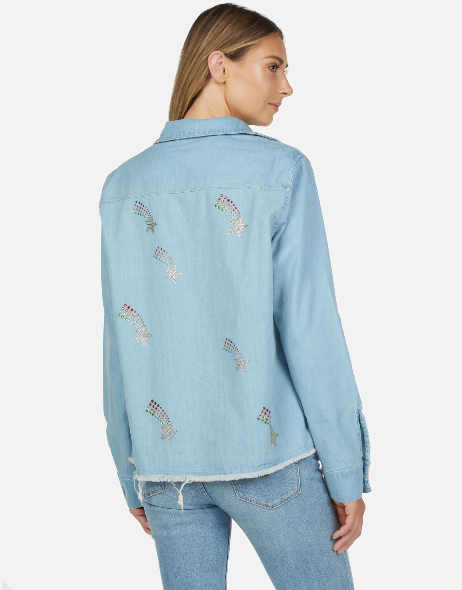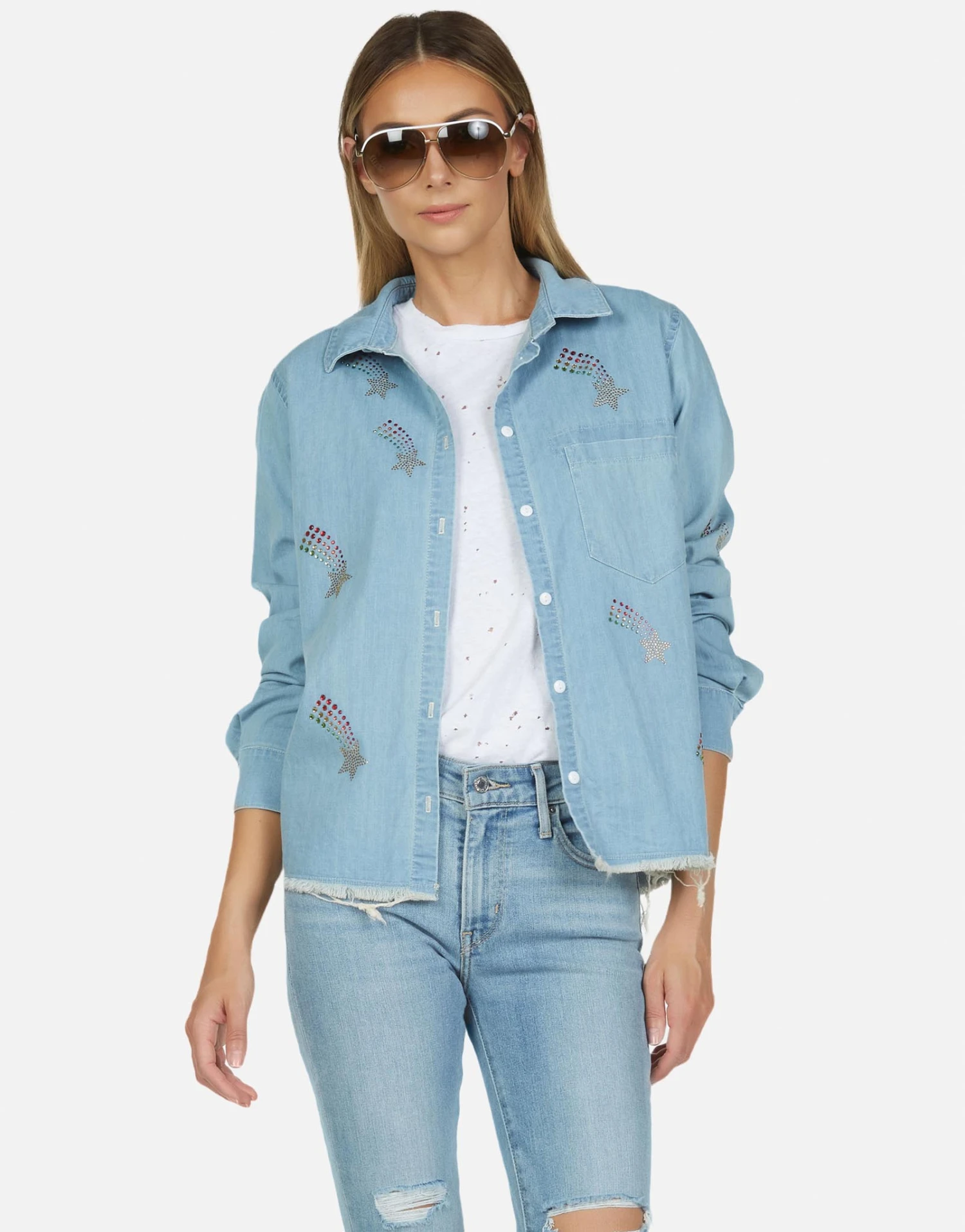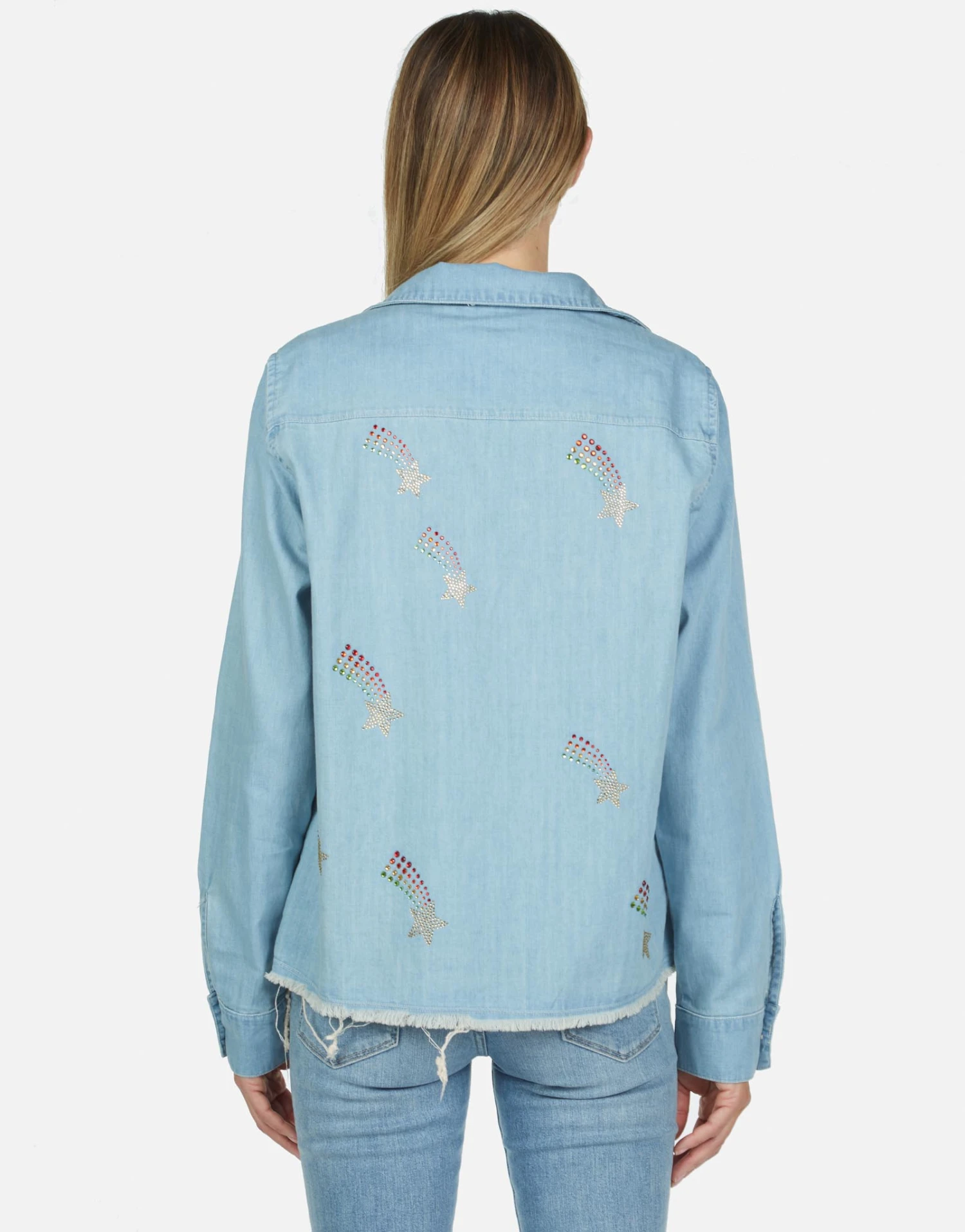 Shooting Stars on Soft Lightweight Denim Shirt in Summerland by Lauren Moshi.