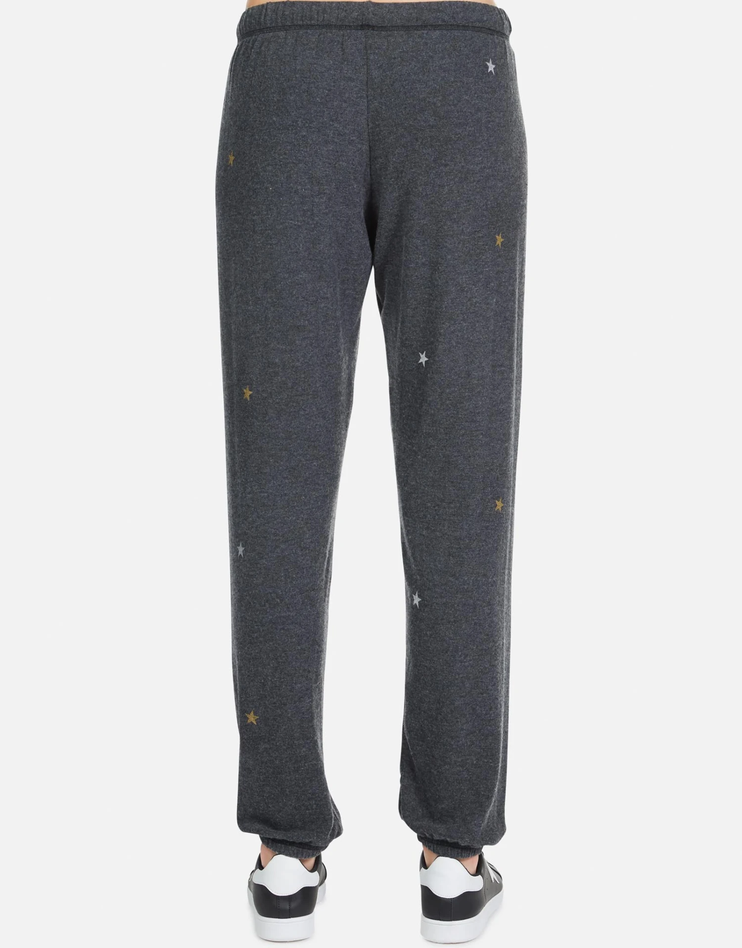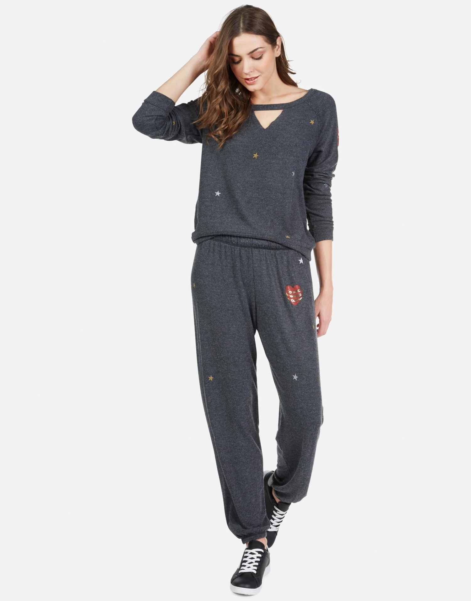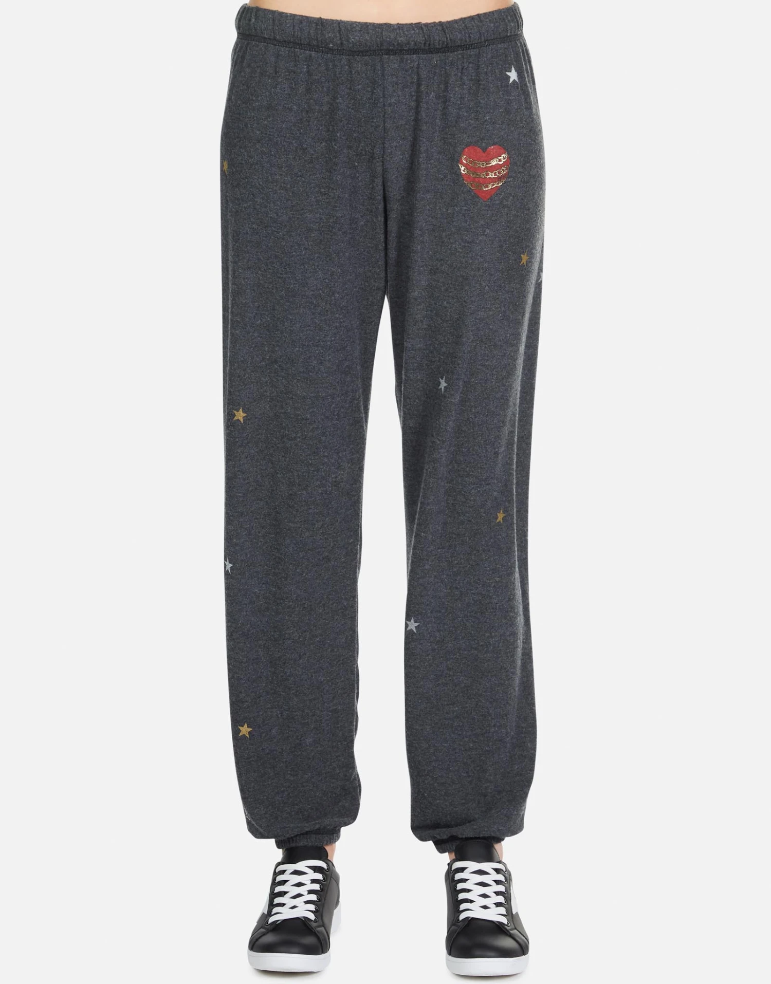 Chain Heart Stars Printed on Ultra Soft Lightweight Long Pant in Heather Black by Lauren Moshi.