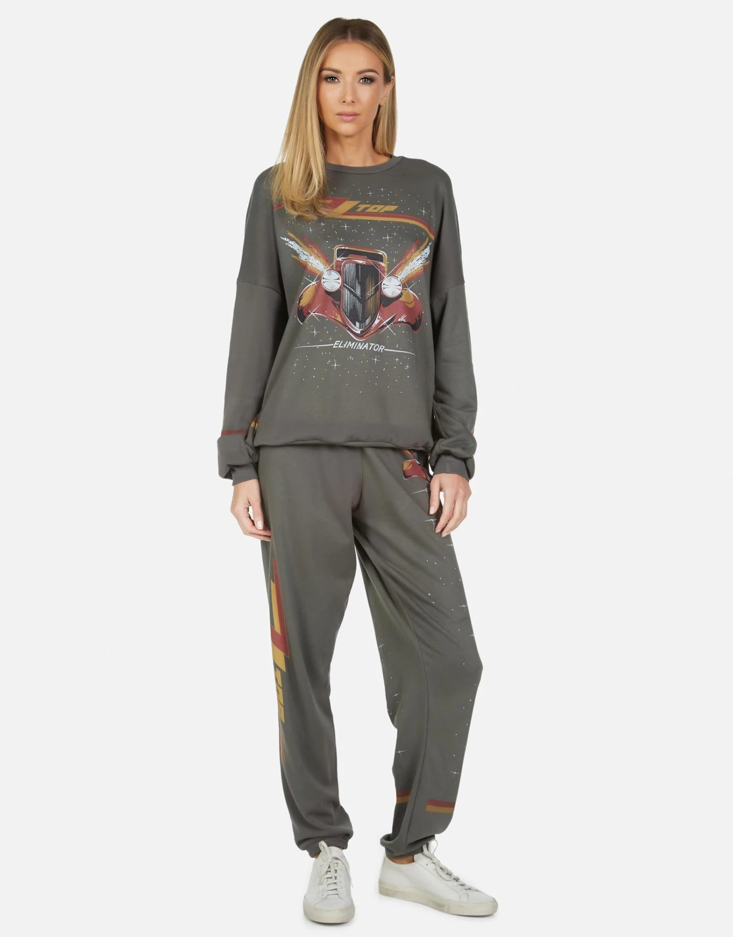 ZZ Top Eliminator Printed on Ultra Soft Lightweight Sweatpant in Vintage Onyx by Lauren Moshi.