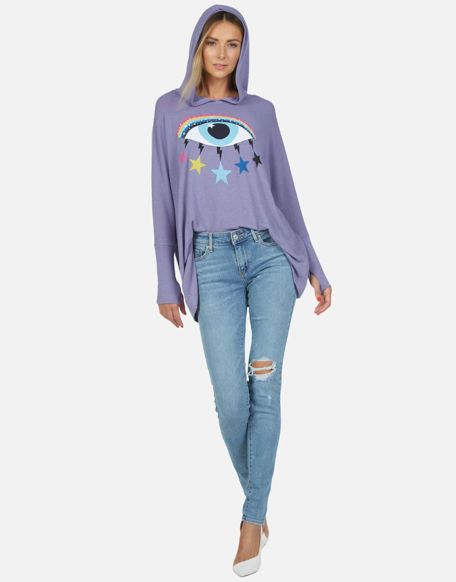 Cosmic Rainbow Eye Printed on Ultra Soft Lightweight Hoodie by Lauren Moshi.